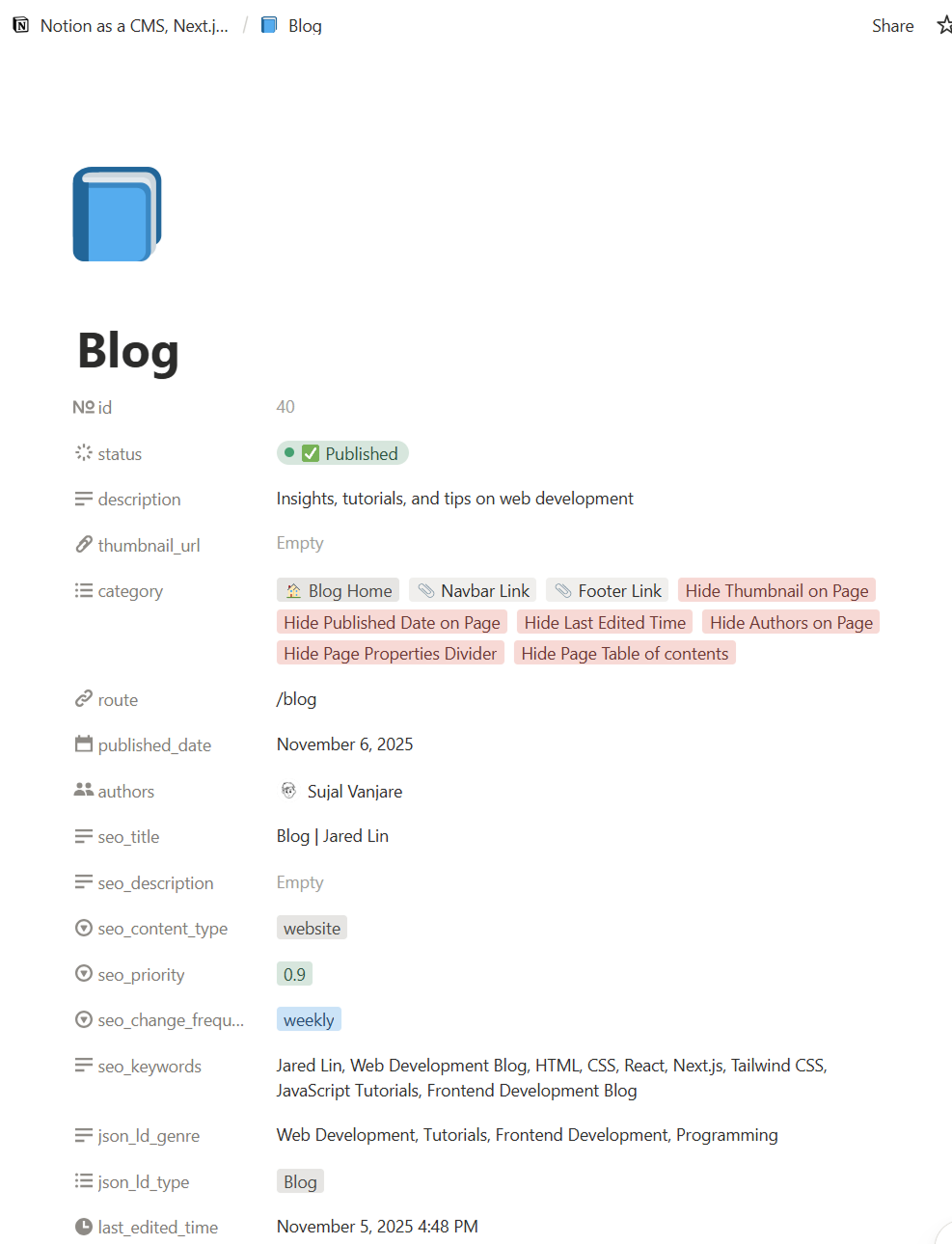 You can edit this page like any other Notion page - it has fields for Title, Description, Thumbnail URL, SEO Title, and SEO Description.