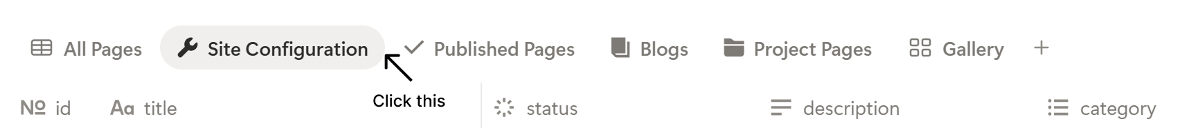 At the top of the table, select the view named Site Configuration.
