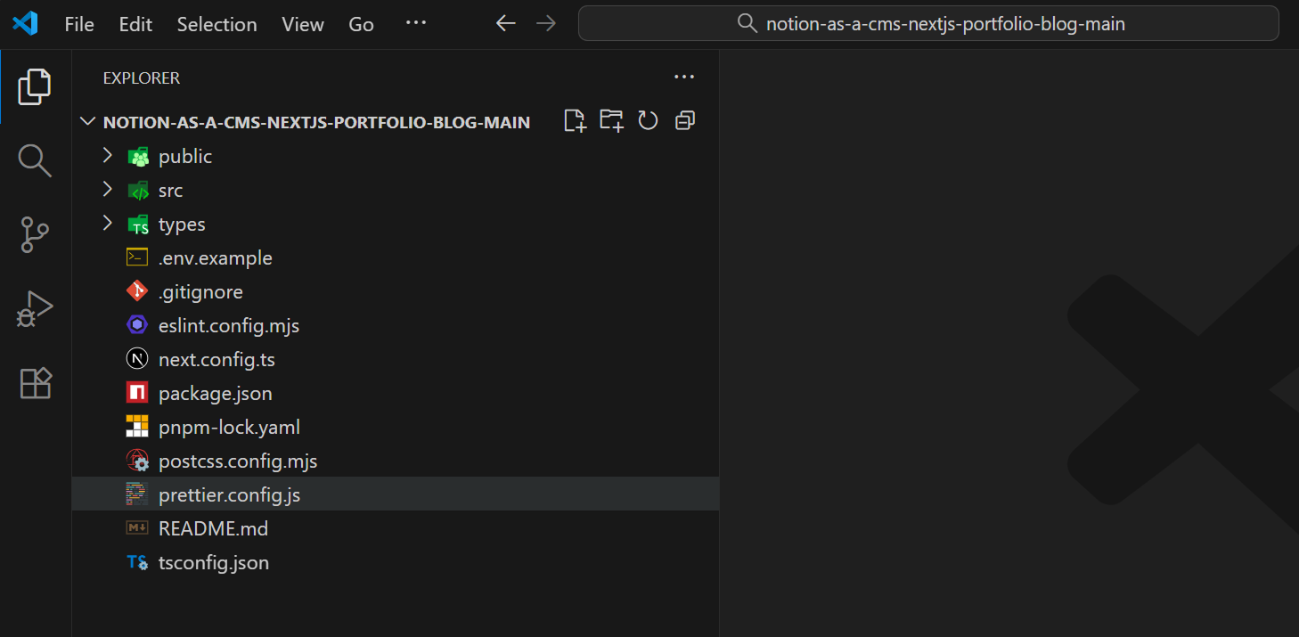 notion-as-a-cms-nextjs-portfolio-blog-main - 4.d.iv.Wait for VS Code to load the files - you’ll see folders like